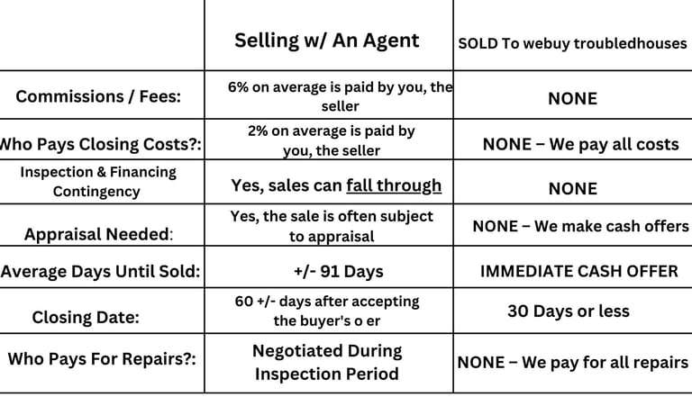 Selling To We buy troubled houses vs. Listing With A Local Agent